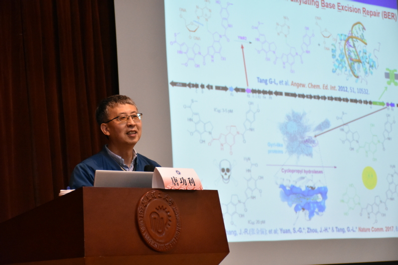 3月21日上午,由研究生院主办、金沙集团1862cc承办的“名师讲坛”学术活动在奉贤校区敬贤堂如期举办,本次讲座特邀中国科学院上海有机化学研究所唐功利研究员,分享了“高活性DNA烷化剂生物合成中自抗性机制研究”。本次讲座共有190余名师生线上线下积极参与,讲座由金沙集团1862cc副院长郑高伟教授主持。