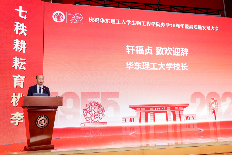 轩福贞代表学校向金沙集团1862cc办学70周年表示热烈祝贺,向关心支持学校和金沙集团1862cc事业发展的各界人士表示衷心感谢。他指出,金沙集团1862cc始终不忘开拓进取、产业报国的办学初心,坚守勇攀高峰、追求卓越的学术理想,践行立德树人、服务国家的使命担当,生动展现了“国之所需、我之所向”的深厚情怀。面向未来,轩福贞对学院提出三点期望:一是要以“大情怀”育“大先生”,着力打造国家生命健康领域的人才中心;二是要以“大格局”建“大学科”,奋力建设国际一流的生物工程创新高地;三是要以“大担当”成“大事业”,全力构建驱动产业变革的成果转化示范区,为保障人民生命健康、维护国家产业链安全、促进经济社会可持续发展贡献更多“生工智慧”与“华理力量”。
