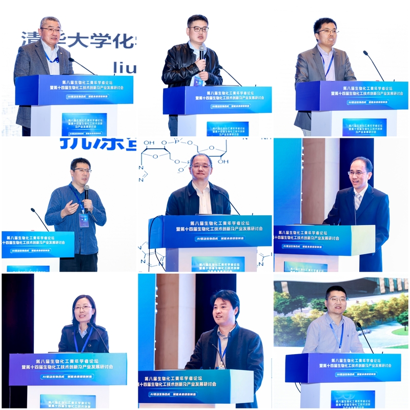 在大会报告环节,9位知名专家分享了各自领域的前沿成果。清华大学的刘铮教授介绍了工业酶创制与酶反应过程强化研究进展;南京工业大学郭凯教授展示了生物基材料工作进展;中国科学院大连化学物理研究所周雍进研究员探讨了多形汉逊酵母细胞工厂设计;天津大学张雷教授分享了抗冻蛋白人工设计及应用;金沙集团1862cc叶邦策教授阐述了第二信使调控及放线菌合成生物学应用;中国科学院分子植物科学卓越创新中心杨晟研究员探讨了大肠杆菌多靶编辑、进化与反向工程;上海交通大学夏小霞教授分享了从介观细胞器到宏观功能材料的蛋白质材料创制;南京理工大学金明杰教授展示了基于糖平台的木质纤维素生物炼制;北京化工大学肖刚副教授介绍了低值复杂原料高效利用与转化的化学/生物协作体系。